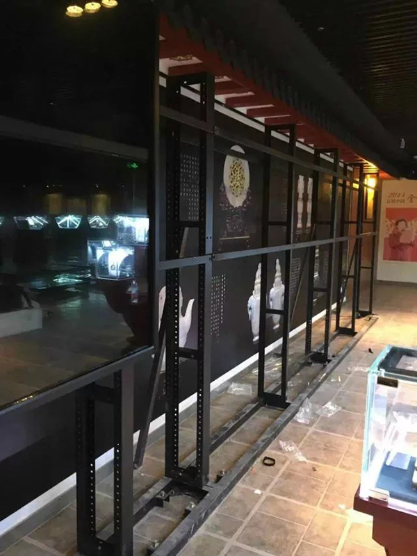 3.所有內(nèi)部設(shè)施安裝完畢后開始安裝液晶拼接屏,由下往上安裝。