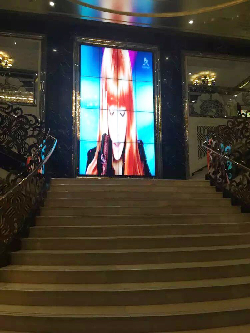 深圳新視銳科技有限公司采用46寸超窄邊5.3mm拼縫拼接屏,根據現場尺寸、環境布局設計為4X4豎屏拼接,立體式拼接墻猶如一扇門,給人高端大氣奢華的品味,昆明市妙音量販式KTV也因此吸引了很多當地音樂愛好者及旅游愛好者,并受到了當地更具檔次的量販式KTV好評。