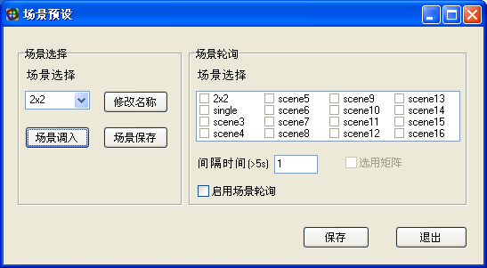 支持16種場景模式保存,可以更改模式名稱。選擇要保存的模式,設置完成后點擊“保存模式”?!罢{用模式”可以調用用戶保存過的模式、跟據有需求用戶的還可以啟用場景輪詢模式
